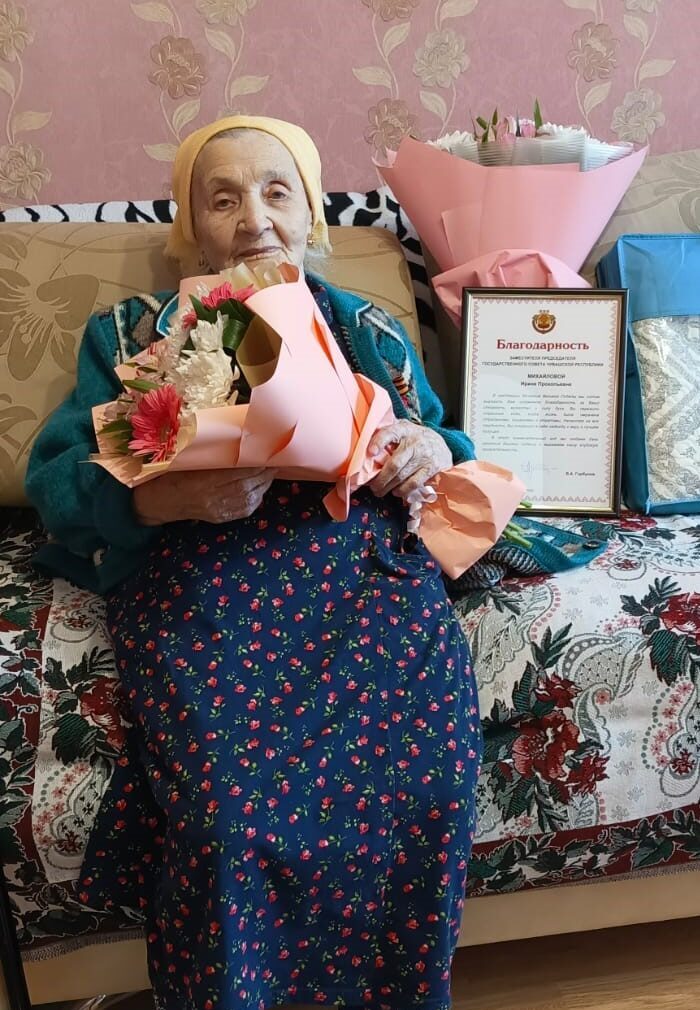 18 апреля 2025 года Михайловой Ирине Прокопьевне исполнилось 100 лет. С этой знаменательной датой Ирину Прокопьевну поздравили сотрудники Федерального государственного бюджетного учреждения государственный центр агрохимической службы «Чувашский» и вручили Благодарность заместителя Председателя Государственного Совета Чувашской Республики Виктора Александровича Горбунова.