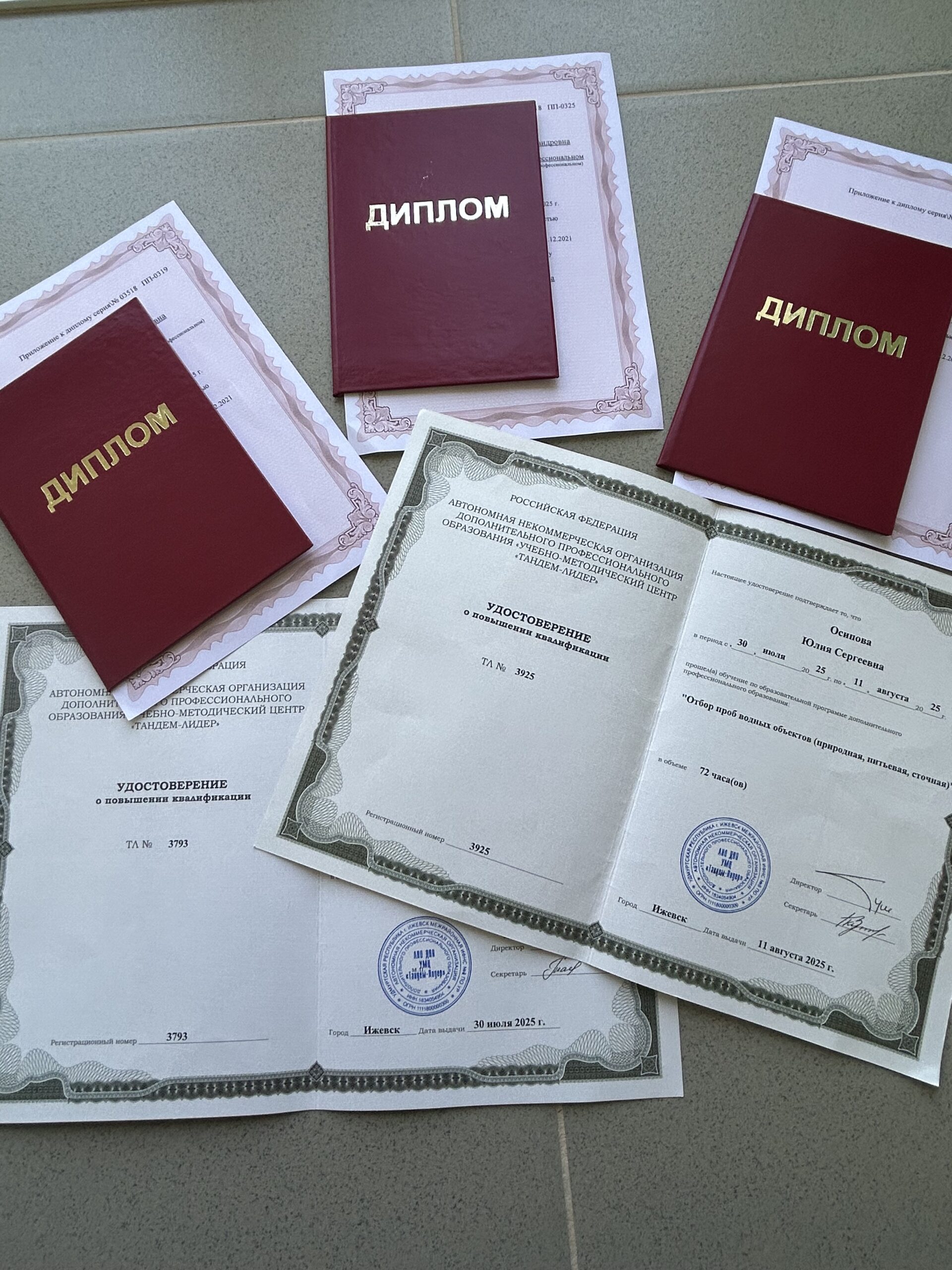 Одним из важных этапов подготовки стало прохождение специалистами лаборатории курсов дополнительного профессионального образования по таким направлениям, как: отбор проб водных объектов и отбор проб объектов окружающей среды. По окончанию курсов специалистам были выданы дипломы и сертификаты.